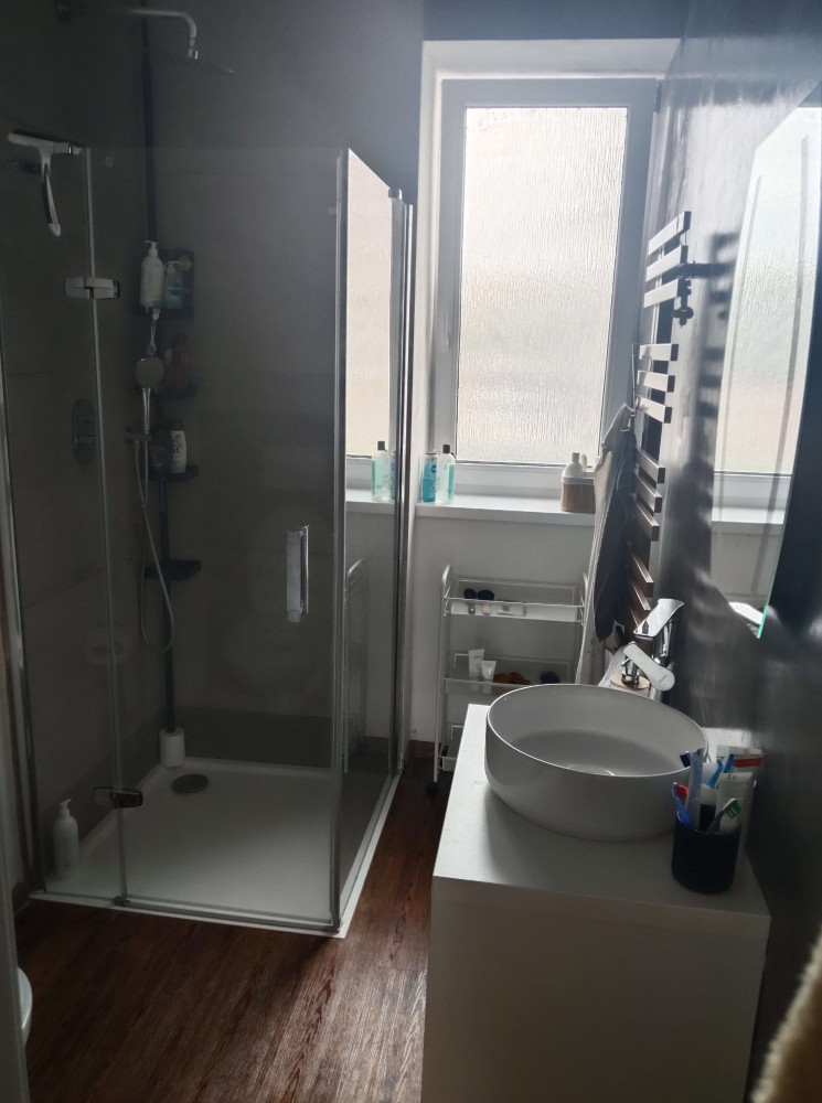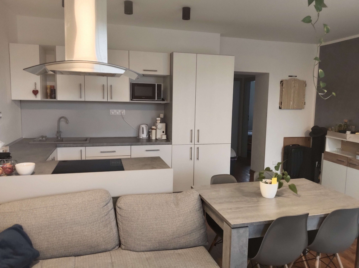 Výhradní nabídka pronájmu velmi hezkého, zařízeného bytu, starší novostavba, o disp. 3kk, 68 m2, s velkou terasou, 20 m2, v patře nového cihlového dvoupatrového rodinného domu se zahradou v Olomouci, nedaleko vojenské nemocnice Hradisko, na ul. Jablonského 65. Byt je vhodný především pro studenty. K pronájmu se nabízí zcela zařízený. Výhradní parkovací místo k tomuto bytu k dispozici není. Skládá se z předsíně, obývacího pokoje se zcela zařízeným kuchyňským koutem, tento pokoj je se vstupem na prostornou terasu s výhledem do zahrady, 2 samostatných, neprůchozích pokojů a koupelny se sprchovým koutem, umyvadlem a WC. V bytě jsou k dispozici skříně, pračka, sedací souprava, konferenční stůl, postele, kuchyň je zcela zařízená vč. myčky, kombin. ledničky, el. sporáku s el. troubou, mikrovlnné trouby a jídelního stolu se židlemi. Cena za pronájem tohoto bytu je ve výši 22.000/měsíc + inkaso, které je ve výši 1.000/osobu, pokud nebude dohodnuto jinak. Vratná kauce je ve výši 2 měs. nájmů bez inkasa, RK je ve výši 1 měsíčního nájmu bez inkasa. Velmi doporučuji. Hezké, nové, zařízené, dobře dostupné bydlení, autob. zastávka 1 min. od domu, do centra Ol. cca 15 min. pěší chůze, přímé spojení do FN Olomouc a k lékařské fakultě, do 7 min. pěší chůze do vojenské nemocnice Hradisko. Možnost využití posezení na vyhrazené části zahrady za domem..K dispozici od 29. 9. 25.